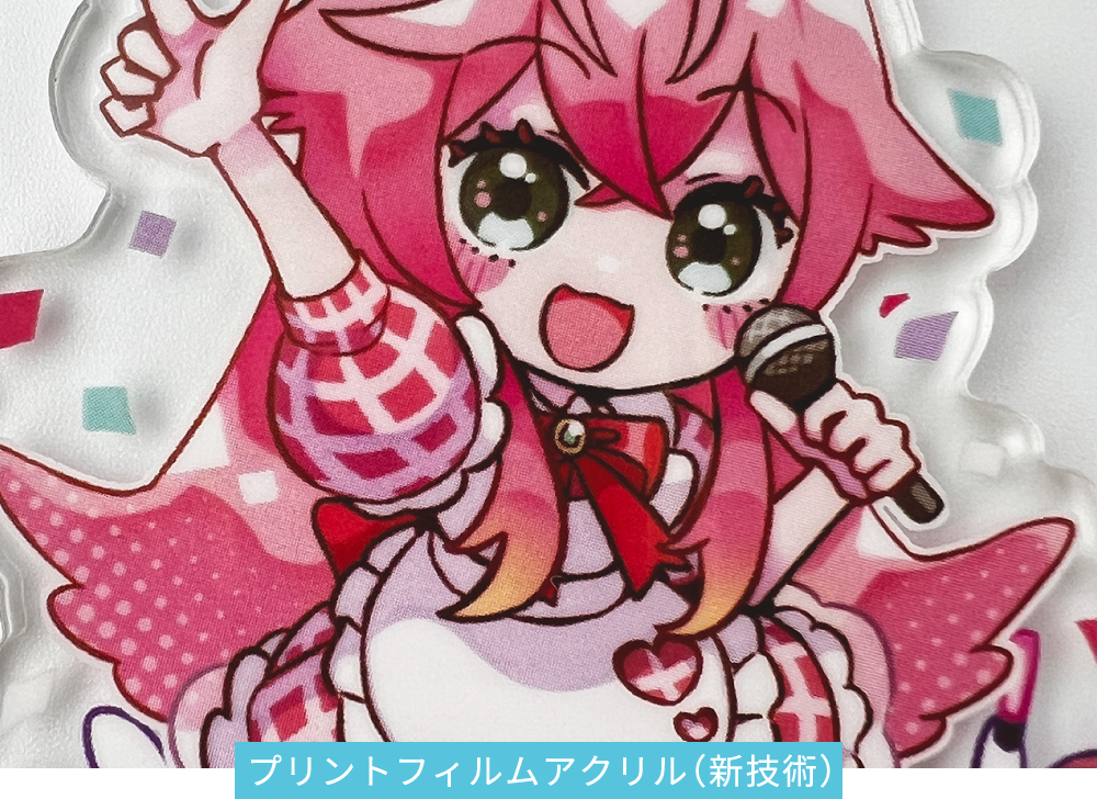 アクリル板に直接インクを吹き付ける方法で、鮮やかな発色が特徴です。